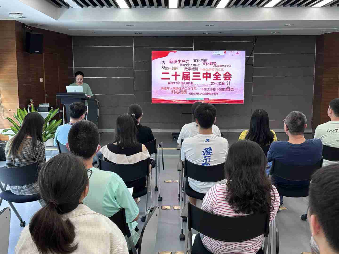 与会人员深入学习《决定》内容。。。。党的二十届三中全会提出必须增强文化自信,,,,发展社会主义先进文化,,,,弘扬革命文化,,,传承中华优秀传统文化,,,,加快适应信息技术迅猛发展新形势,,,,构建更有效力的国际传播体系,,这为广大文化产业工作者指明了奋斗方向。。。。