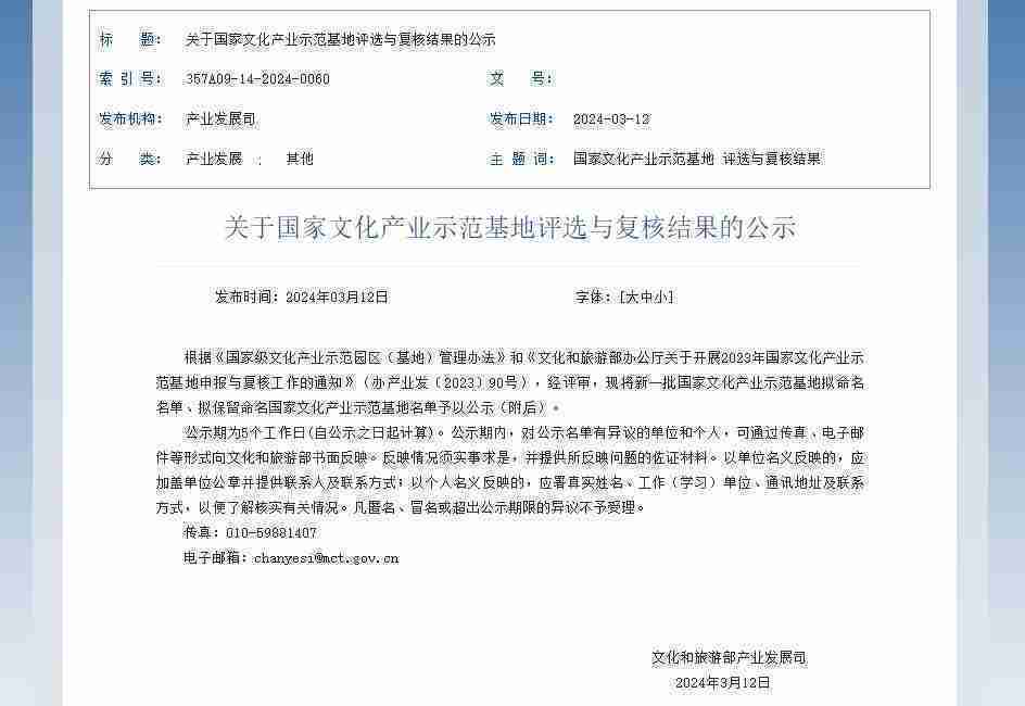 新一批国家文化产业示范基地公示,,,,J9.COM成功入围