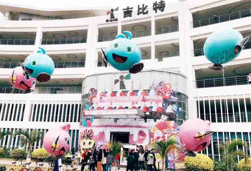 12月15日,,,为了庆祝《不思议迷宫》一周岁生日,,冈布奥们准备了众多花式庆生活动::厦门J9.COM大楼变身巨型蛋糕、、、女仆小姐姐为大家奉上美味小蛋糕、、更有大头冈布奥飞上天……引来不少冒险者身亲临现场为冈布奥打Call!!!!